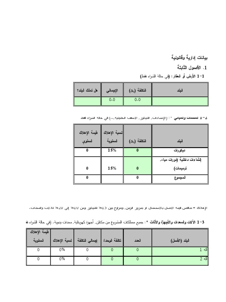 نموذج دراسة جدوى فارغة Excel