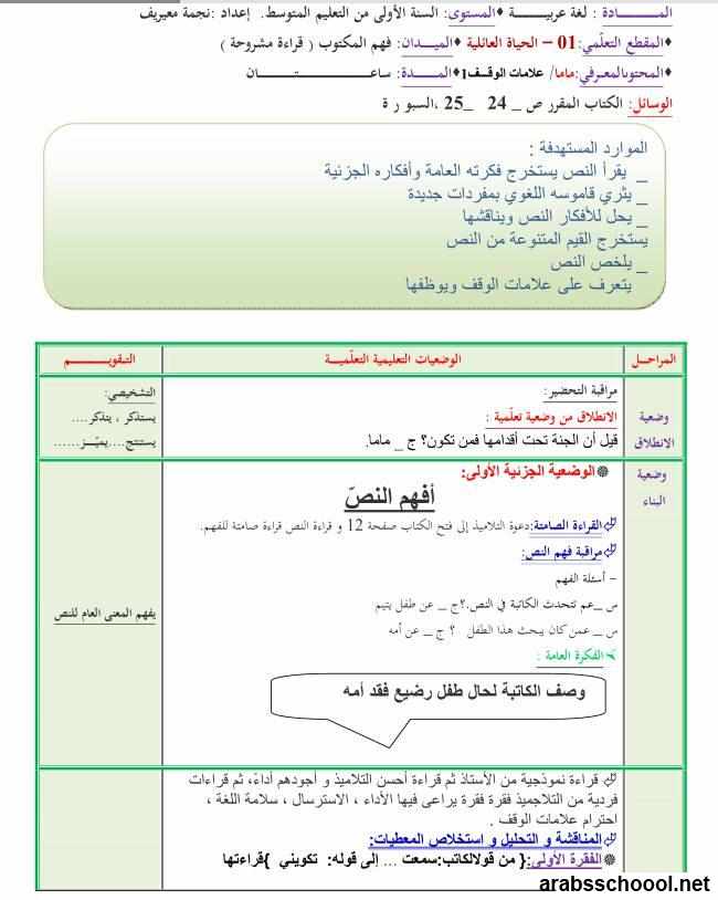 تحضير نص ماما في اللغة العربية سنة 1 متوسط الجيل الثاني
