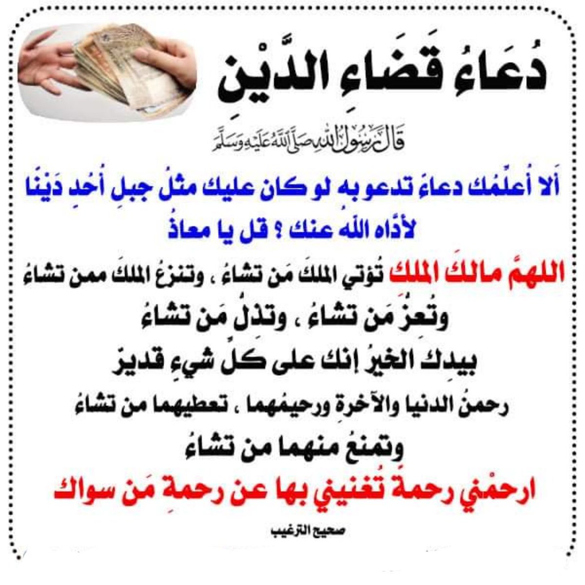 قضاء الدين دعاء الدين اللهم مالك الملك تؤتي الملك من تشاء