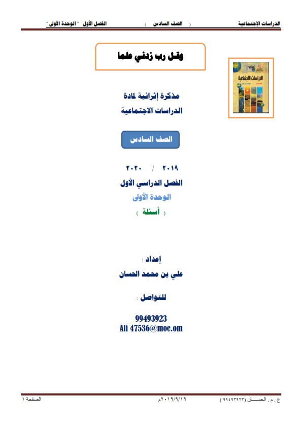 مذكرة اثرائية لمادة الدراسات الاجتماعية الصف السادس الوحدة الاولى الفصل الاول اسئلة واجوبة