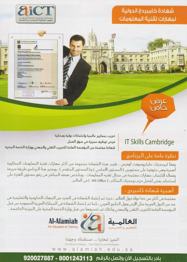 شهادة كامبردج الدولية لمهارات تقنية المعلومات بجامعة الأمير سطام بن عبدالعزيز عمادة خدمة المجتمع والتعليم المستمر