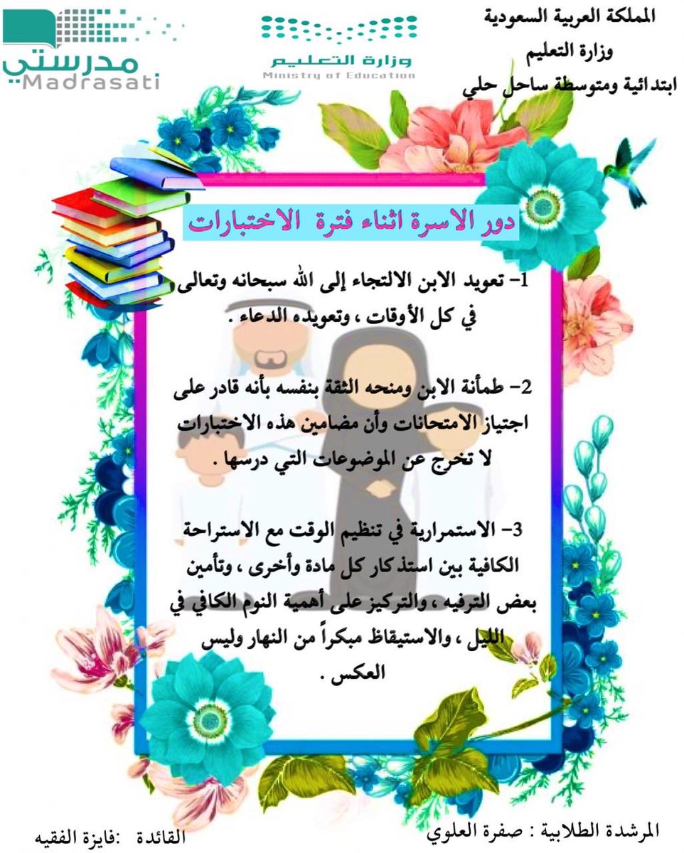 مدرسة ساحل حلي روضة والابتدائية والمتوسطة On Twitter دور الأسرة اثناء فترة الاختبارات وزارة التعليم منصة مدرستي تعليم القنفذة