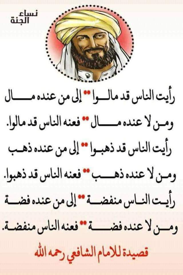 عبدالرحمن النصار No Twitter أبيات في الحكمة للإمام الشافعي رحمه الله رأيت الناس قد عدلوا إلى من عنده العدل ومن لا عنده عدل فعنه الناس قد عدلوا رأيت الناس قد مالوا إلى