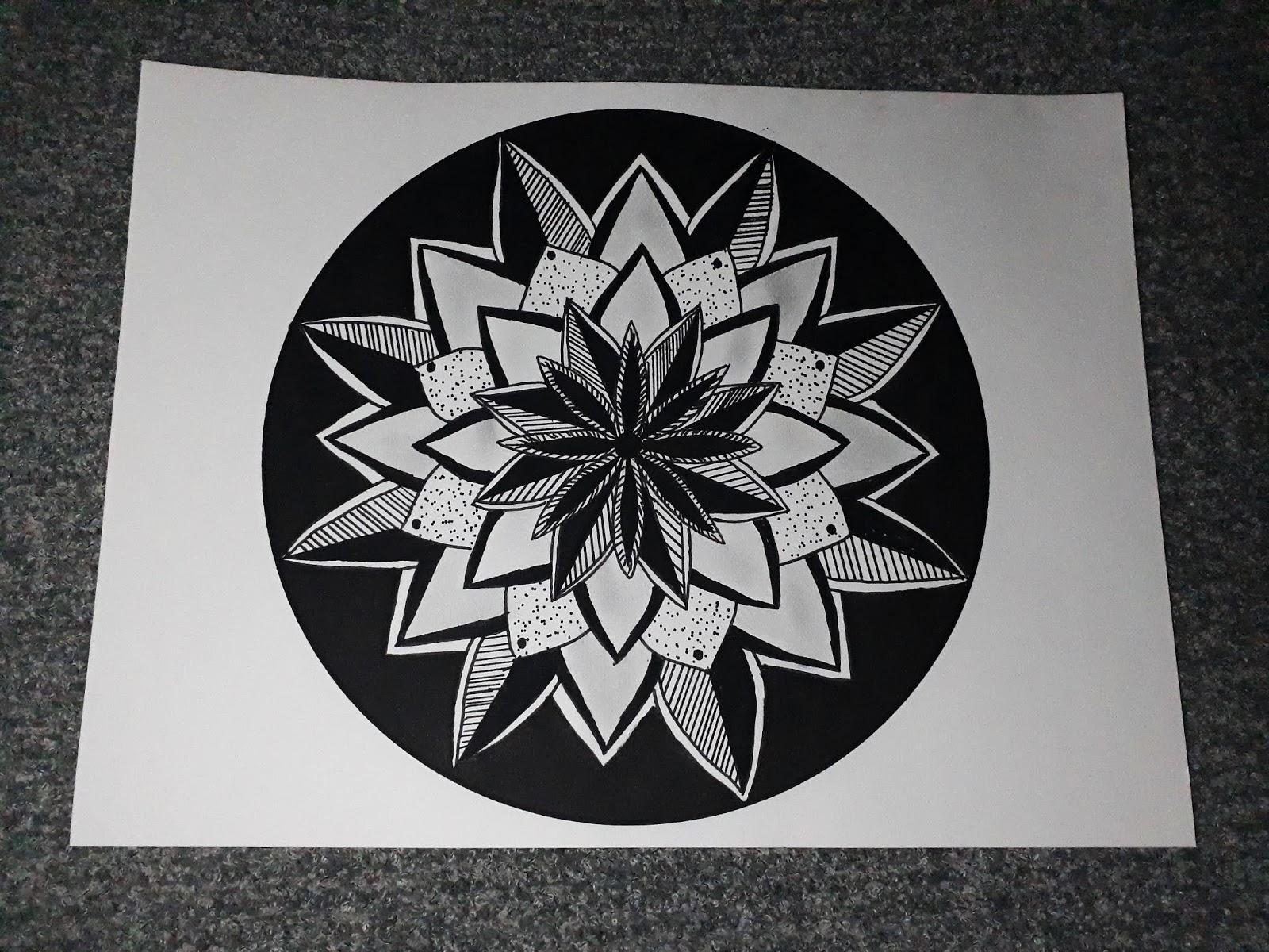 رسم ماندالا بسيطة بلونين فقط الأبيض والأسود Arts Tube