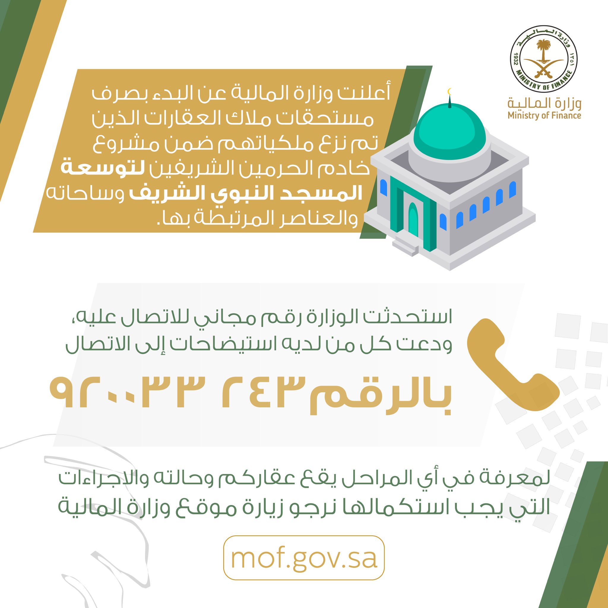 رقم وزارة المالية المجاني