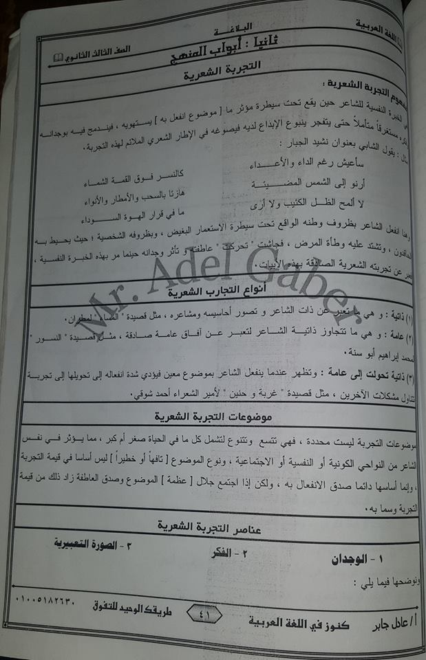 ملخص بلاغة للصف الثالث الثانوي أ عادل جابر