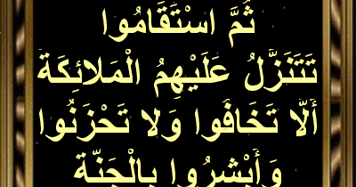 القران الكريم إ ن ال ذ ين ق ال وا ر ب ن ا الل ه ث م اس ت ق ام وا ت ت ن ز ل ع ل ي ه م ال م ل ائ ك ة أ ل ا ت خ اف وا و ل ا ت ح ز ن وا و أ ب ش ر وا ب ال ج ن ة ال ت ي ك ن ت م ت وع د ون