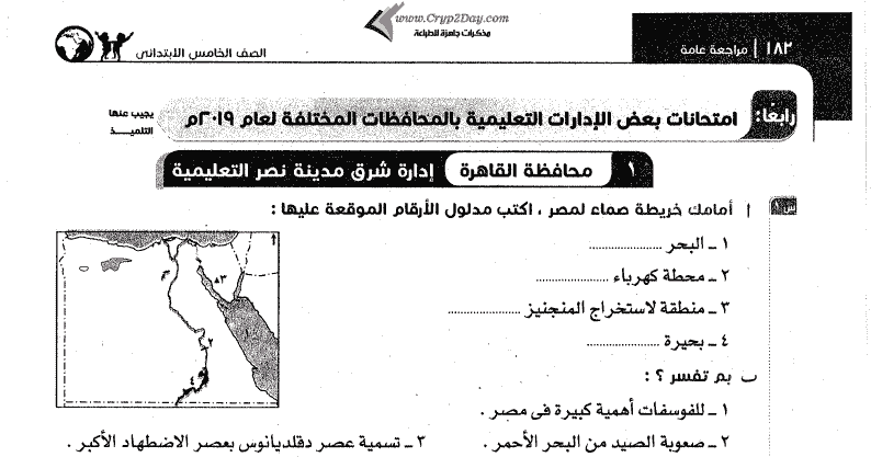 امتحانات سلاح التلميذ فى الدراسات الاجتماعية للصف الخامس الابتدائى الترم الثانى 2019