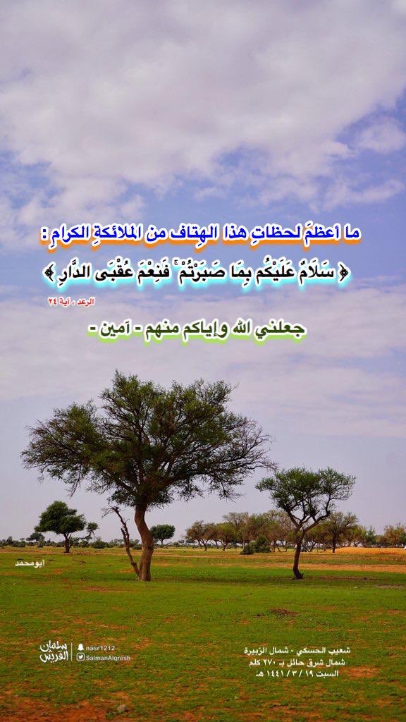 عبدالعزيز المانع على تويتر ما أعظم لحظات هذا اله تاف من الملائكة الكرام س ل ام ع ل ي ك م ب م ا ص ب ر ت م ف ن ع م ع ق ب ى الد ار جعلني الله وإياكم منهم آمين Https T Co Qaqwmrjcwt
