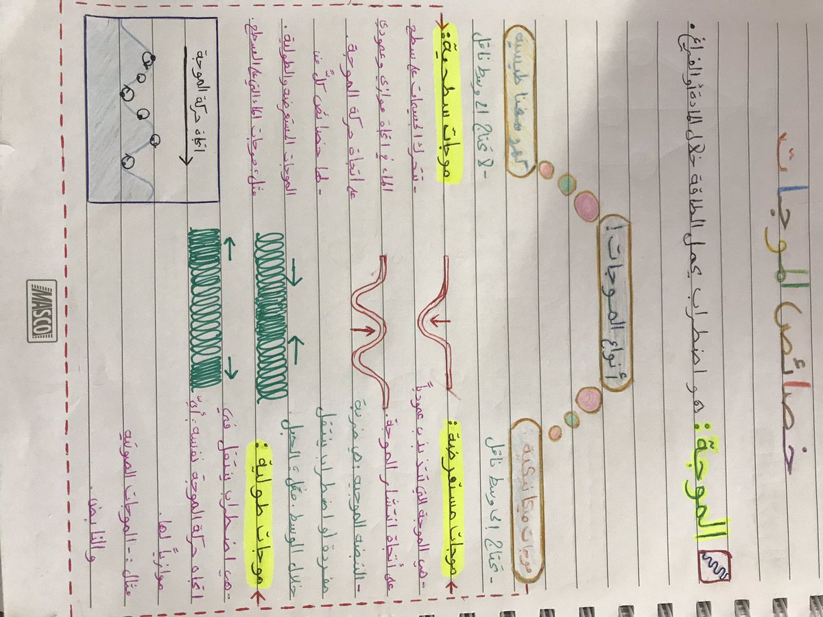 بسم الله الرحمن الرحيم السلام عليكم ورحمة الله وبركاته ملخص درس خصائص الموجات الاهتزازات والموجات نبدأ على بركة الله.