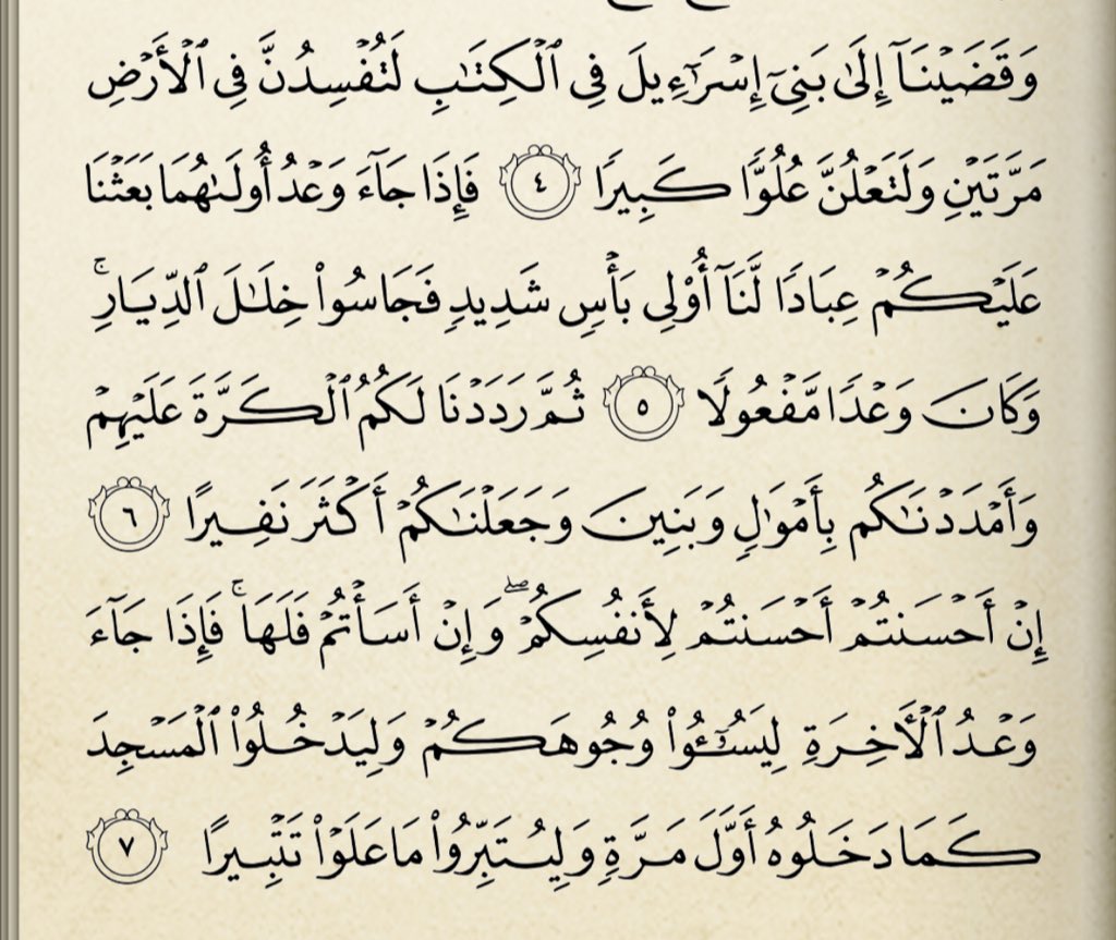 عبدالل طيف الهندياني בטוויטר وقضينا إلي بني إسرائيل في الكتاب لتفسدن في الأرض مرتين ولتعلن علوا كبيرا فإذا جاء وعد أولاهما بعثنا عليكم عبادا لنا أولي بأس شديد فجاسوا خلال الديار وكان وعدا