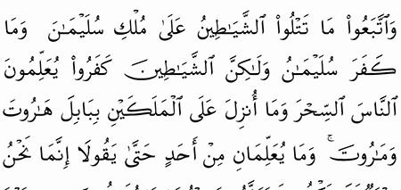 أسباب نزول آيات القرآن و ات ب ع وا م ا ت ت ل وا الش ي اط ين ع ل ى م ل ك س ل ي م ان و م ا ك ف ر س ل ي م ان و ل ك ن الش ي اط ين ك ف ر وا ي ع ل م ون الن اس الس ح ر سورة البقرة