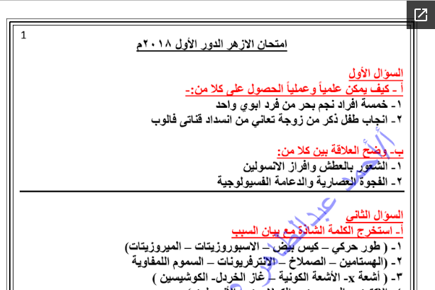 نموذج الوزارة لامتحان الاحياء للصف الاول الثانوي مدرس اول