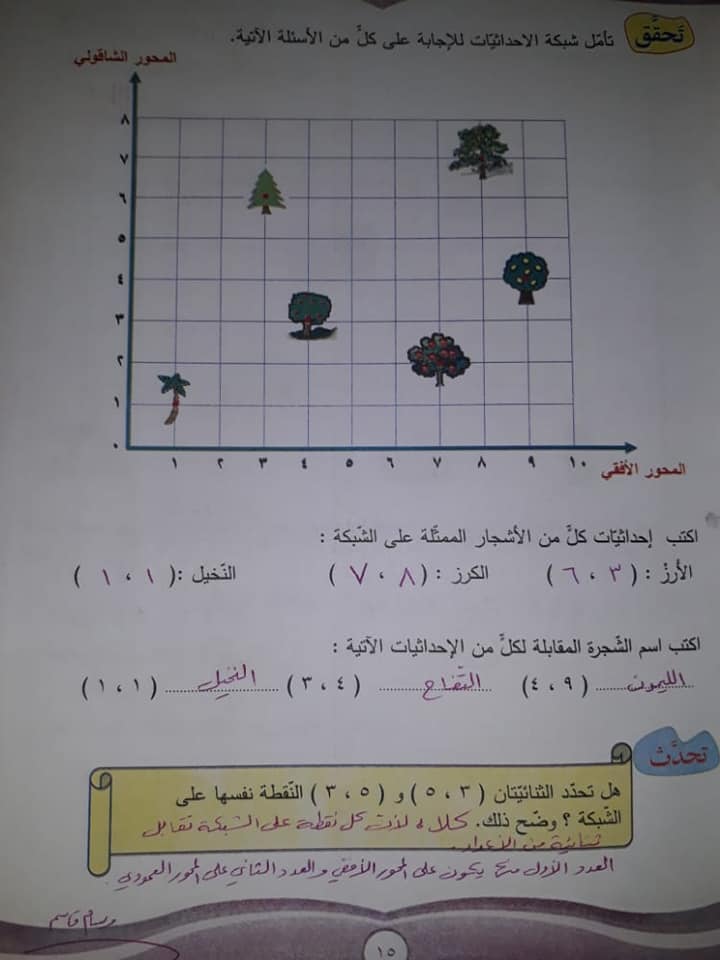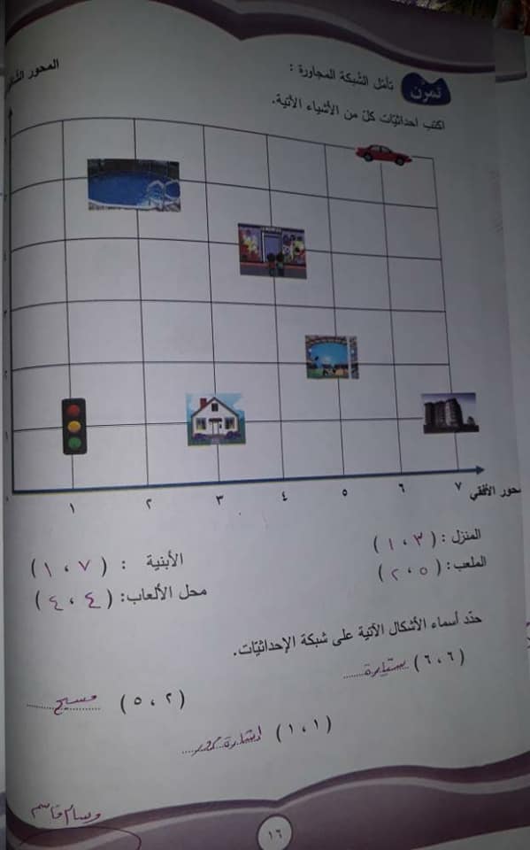 حل درس شبكة الإحداثيات رياضيات للصف الرابع الفصل الاول