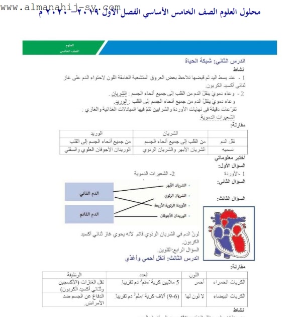ورقة عمل علوم الصف الخامس للدروس دمشق الآن التعليمية فيسبوك