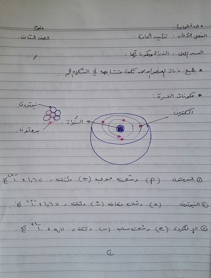 بالصور تلخيص علوم الصف الثامن الوحدة الثالثة المادة الفصل الاول تركيب المادة الدرس الاول الذرة و مكوناتها الفصل الدراسي الأول منتديات صقر الجنوب