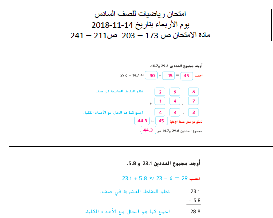 أوراق عمل و امتحان لمادة الرياضيات المتكاملة للصف السادس مع الإجابات الفصل الاول منتديات صقر الجنوب
