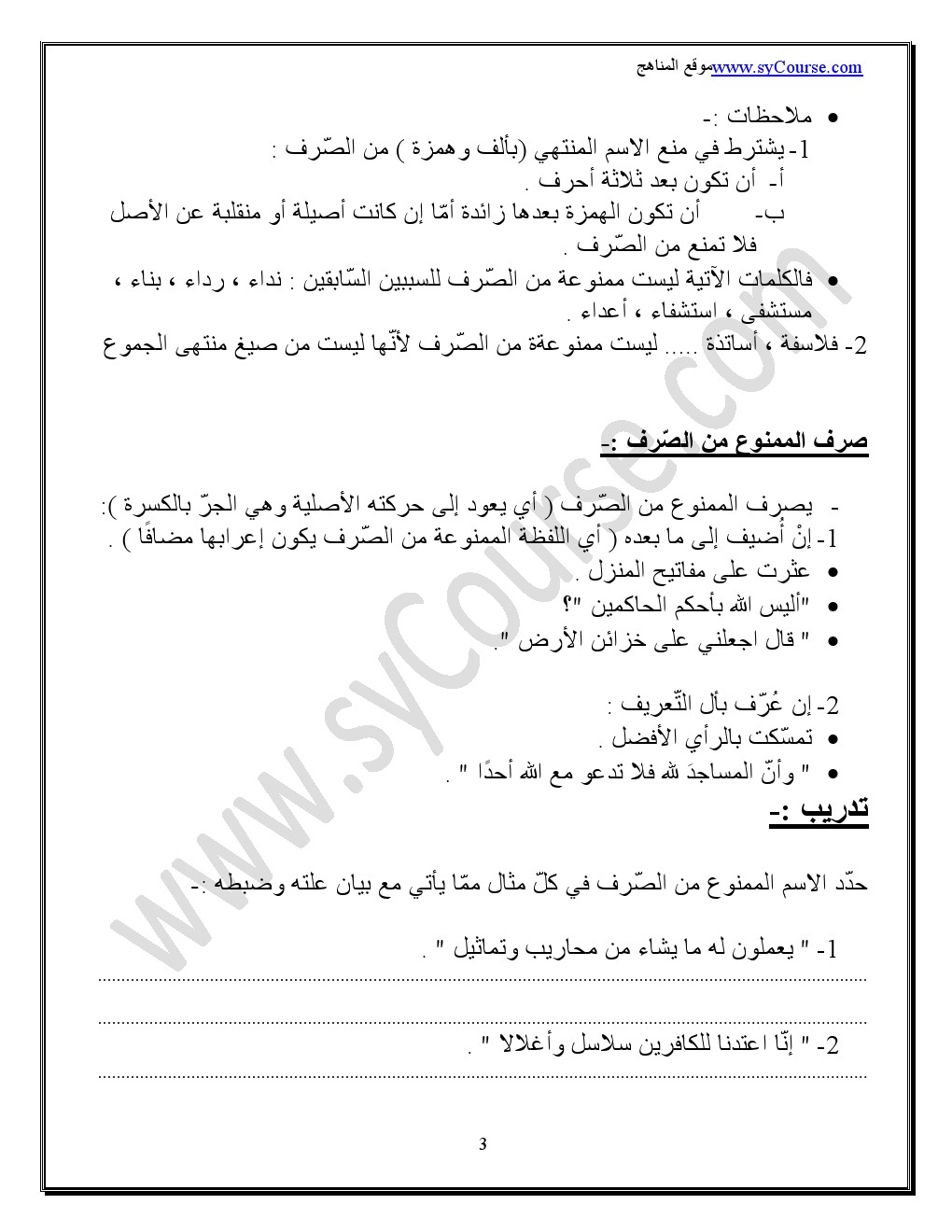 شرح درس الممنوع من الصرف لمادة اللغة العربية القواعد بطريقة مبسطة للصف العاشر الفصل الثاني منتديات صقر الجنوب