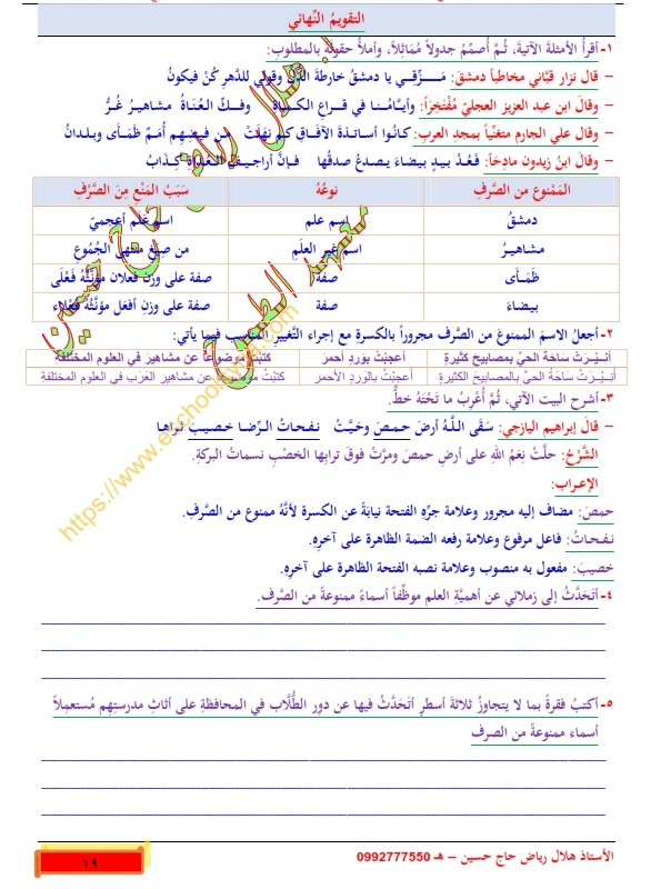 اللغة العربية شرح الممنوع من الصرف للصف التاسع ملفاتي