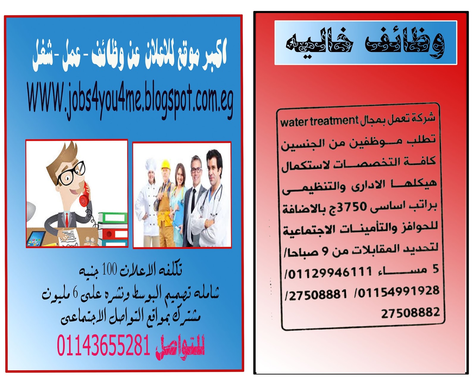 اكبر موقع للاعلان عن وظائف عمل شغل خاصه وحكوميه وظائف خاليه شركه معالجه المياه تطلب موظفين براتب اساسى 3750