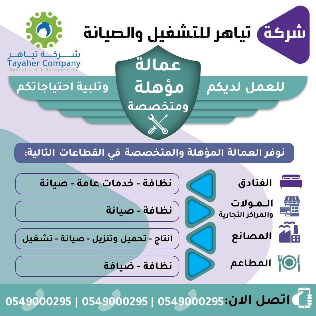 لقد تميزت مسيرة الشركة منذ إنشائها في السبعينات بتوسعات متعددة إلى يومنا هذا. شركة زهران للصيانة والتشغيل تعلن عن توفر وظائف شاغرة في عدة مجالات أكتوبر 14 2020 دام عزك ياوطن ودامت الهمة حتى القمة. تعلن شركة افراس للتجاره والمقاولات عن توفر وظائف شاغرة للرجال والنساء للعمل في منطقة القصيم بريدة عبر برنامج تمهير التدريب على رأس العمل. هو البرنامج الذي بقوم بإدارة ومتابعة اداء الصيانة والتشغيل في المؤسسات والشركات ومتابعة التنفيذ واصدار اشعارات التنبيه للصيانة الوقائية وتسجيل تاريخ المعدات من صيانة واصلاح ومعرفة.