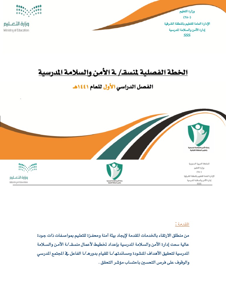 مع النماذج الخطة الفصلية لمنسقي الامن والسلامة الفصل الدراسي الاول 1441 1