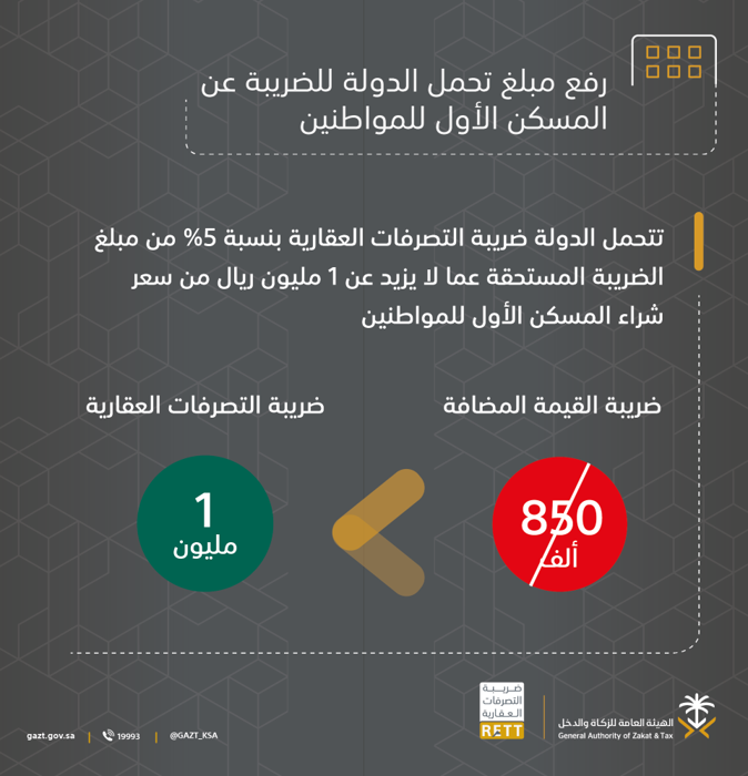 الهيئة العامة للزكاة والدخل On Twitter تتحمل الدولة عن المواطنين ضريبة التصرفات العقارية بنسبة 5 من مبلغ الضريبة المستحقة عما لا يزيد عن مبلغ 1 مليون ريال من سعر شراء المسكن الأول