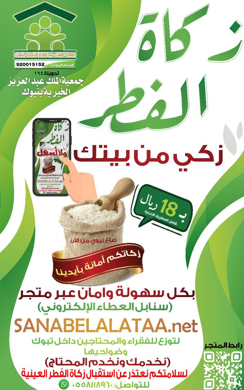 جمعية الملك عبدالعزيز الخيرية بتبوك On Twitter تعلن جمعية الملك عبدالعزيز الخيرية عن إستقبال زكاة الفطر عبر متجر جمعية الملك عبدالعزيز الخيرية الموضح فيه 1 قيمة الصاع 2 طريقة الدفع 3 وسيلة التواصل دخول